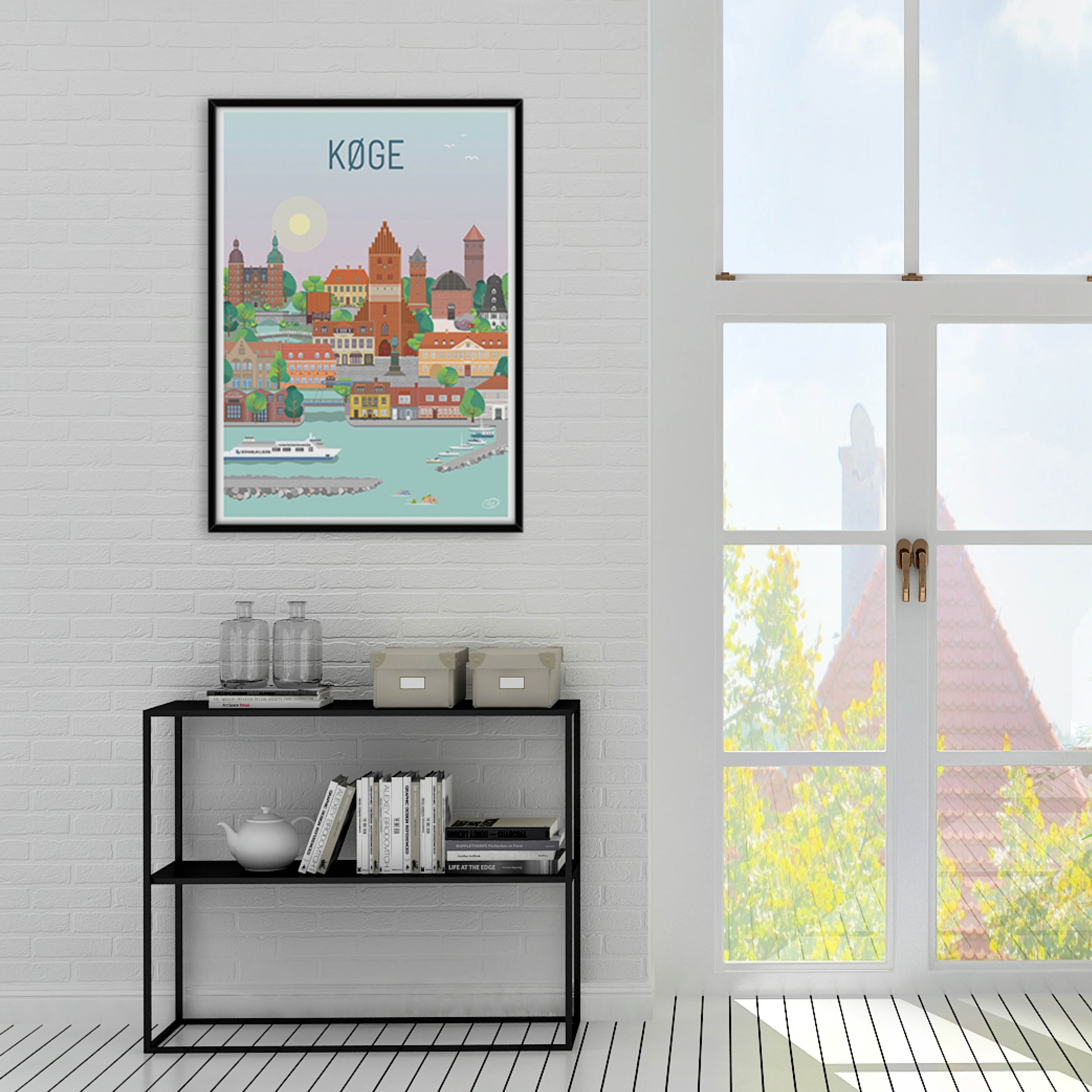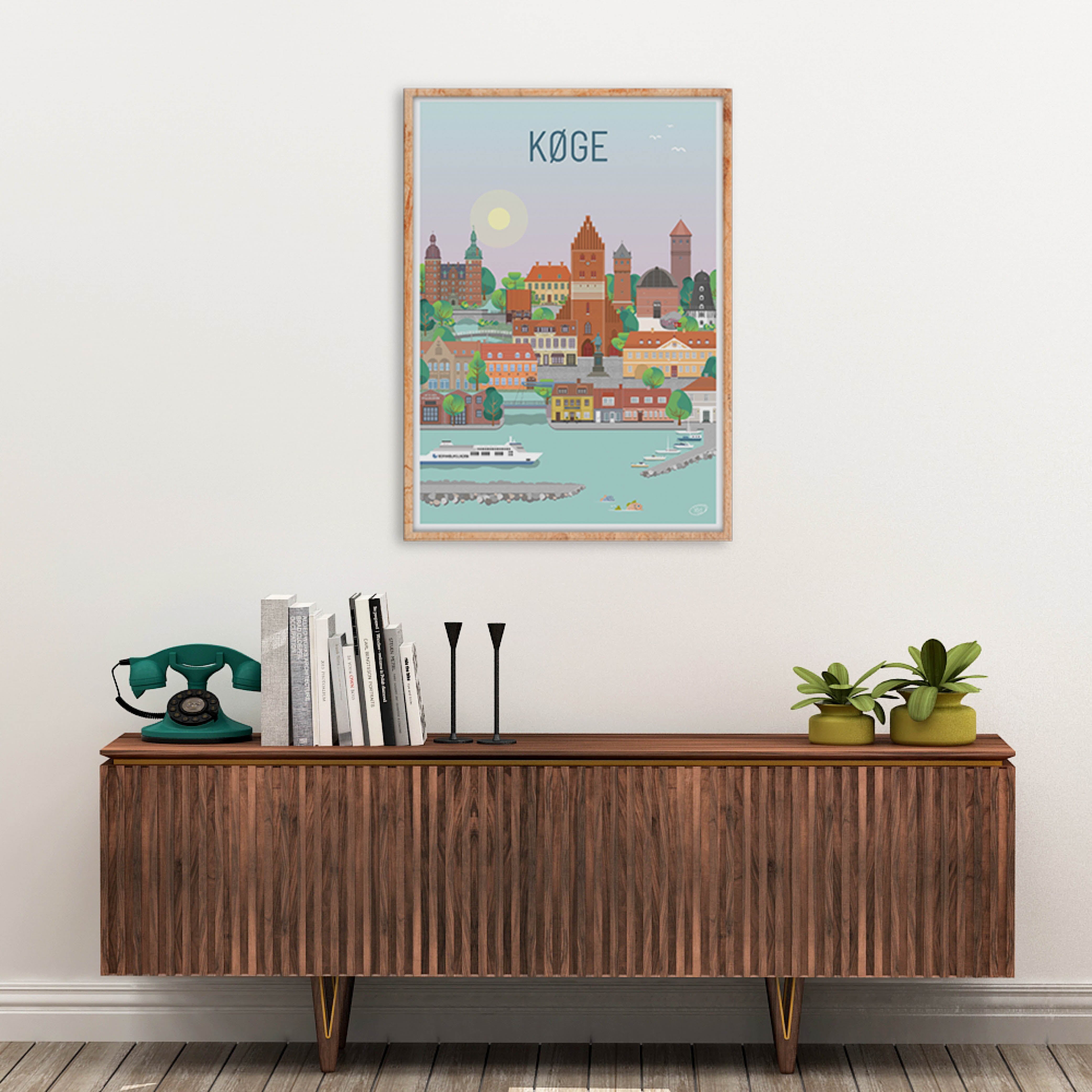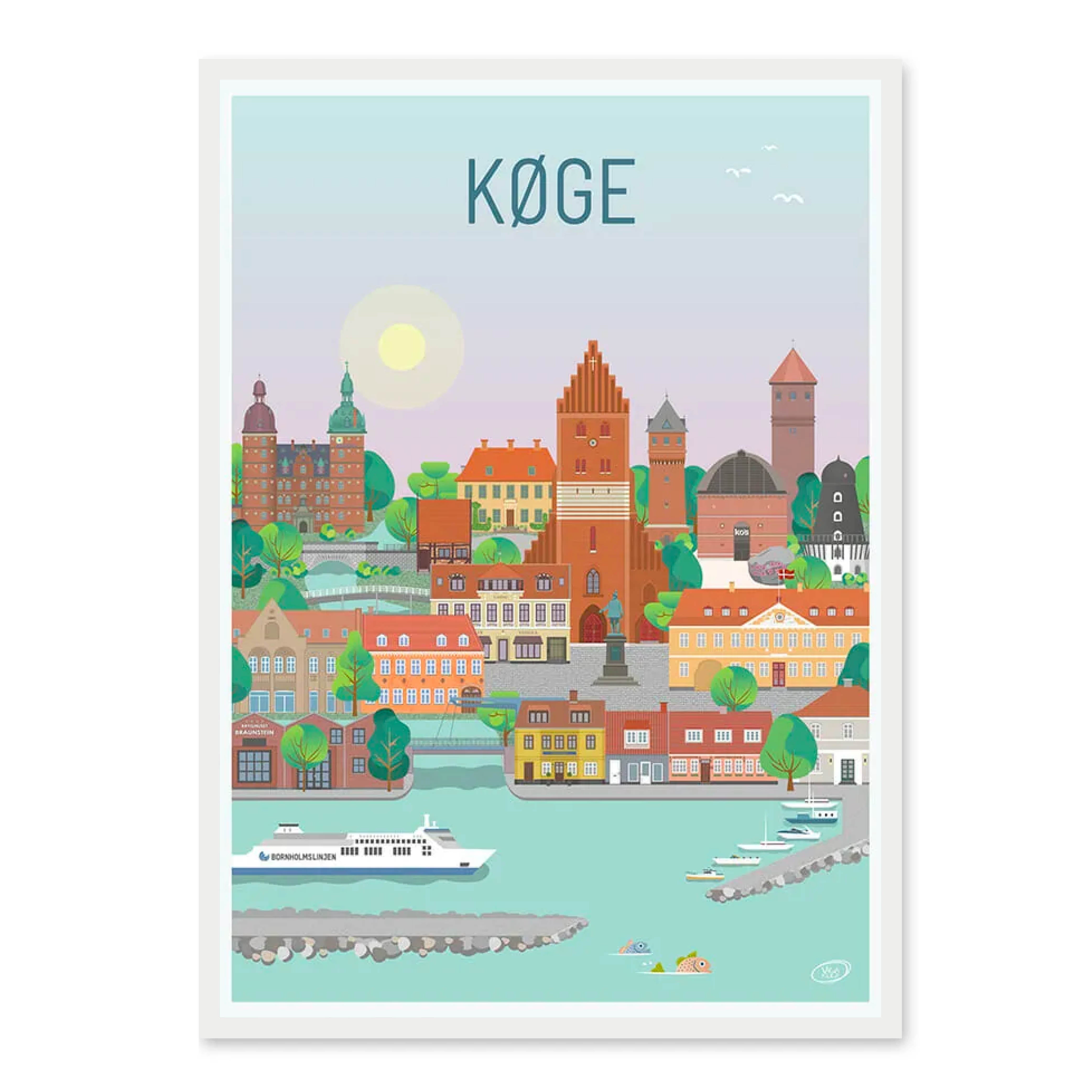 Ein wunderschönes und detailliertes Stadtplakat von Vilakula mit dem Motiv des schönen Køge. Hier haben sie die Atmosphäre der Stadt sowie einige der schönen Gebäude der Stadt eingefangen. Das wunderschöne Køge-Poster ist in einem farbenfrohen Universum gestaltet, das die Wände jedes Zuhauses wunderschön schmückt und einen Kontrast zu den schwarz-weißen Häusern schafft.