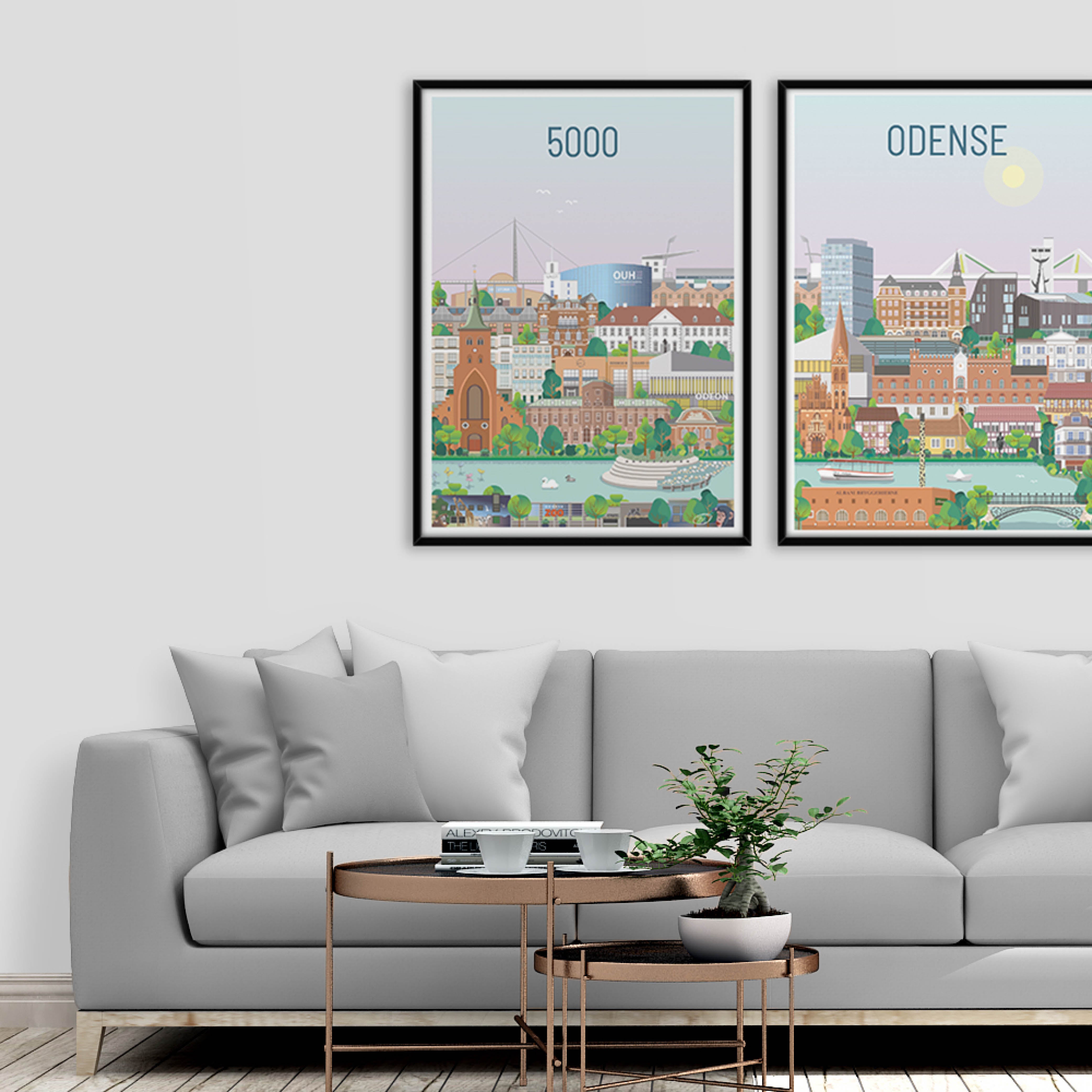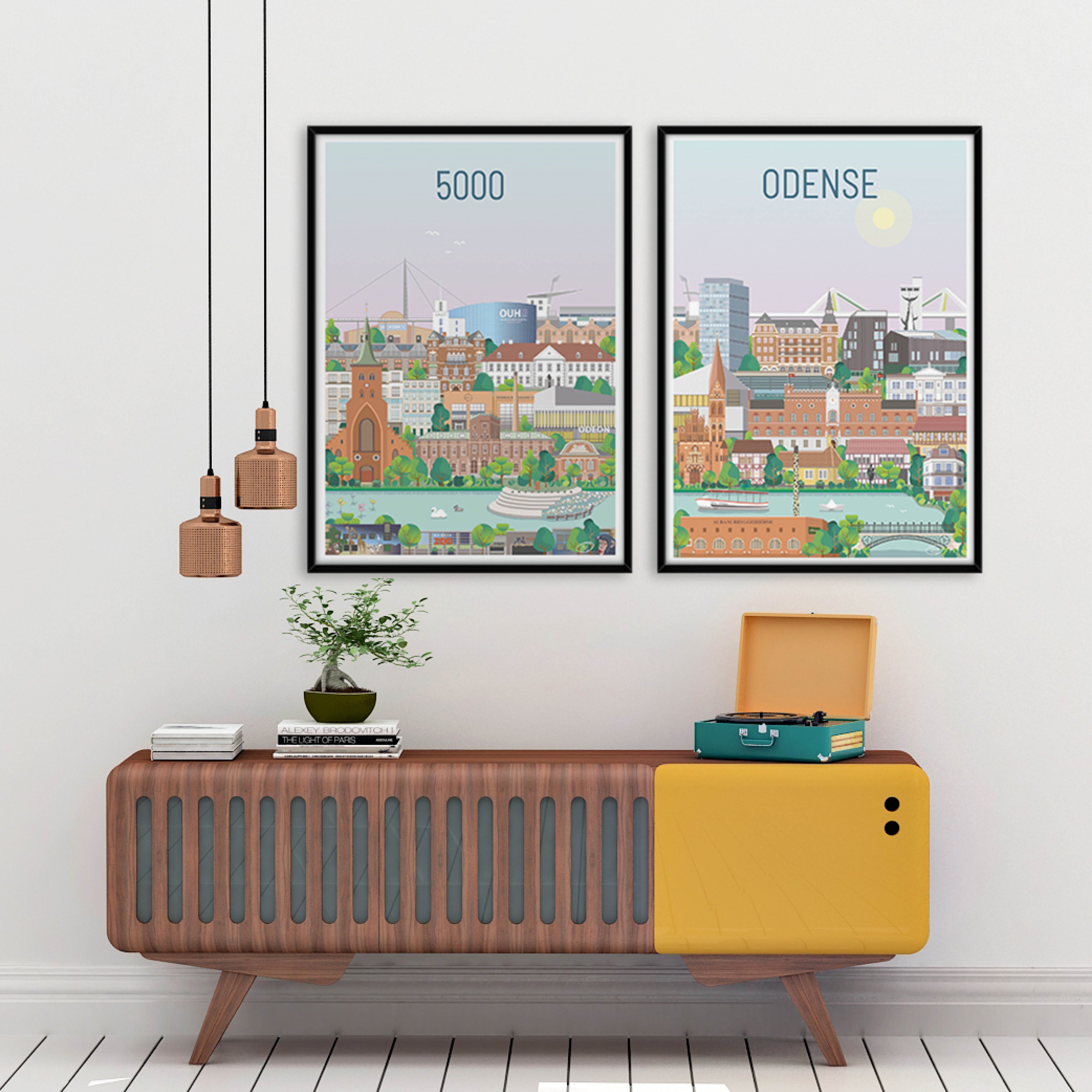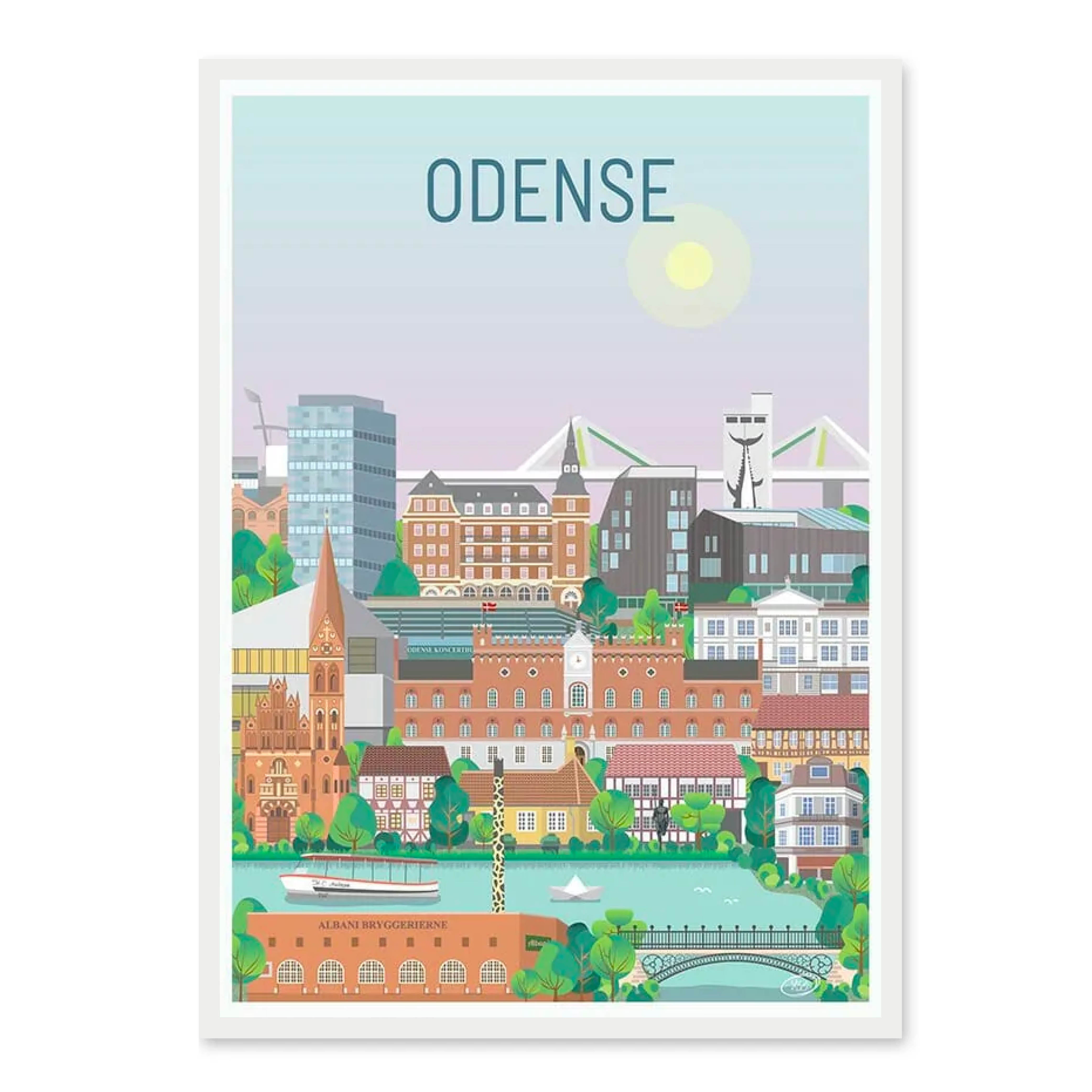 Ein wunderschönes und detailliertes Stadtplakat von Vilakula mit dem Motiv des schönen Odense. Hier haben sie die Atmosphäre der Stadt eingefangen. Vilakula hat mehrere wunderschöne Gebäude auf ihrem Poster festgehalten. Sie können z.B. finden Sie die Albani-Brauerei mit dem Giraffenschornstein, den Kramboden, die St. Albani-Kirche, das North Atlantic House, Odins Brücke, den unerschütterlichen Zinnsoldaten und das Papierboot. Das wunderschöne Odense-Poster ist in einem farbenfrohen Universum gestaltet, das die Wände jedes Zuhauses wunderschön schmückt und einen Kontrast zu den schwarz-weißen Häusern schafft.