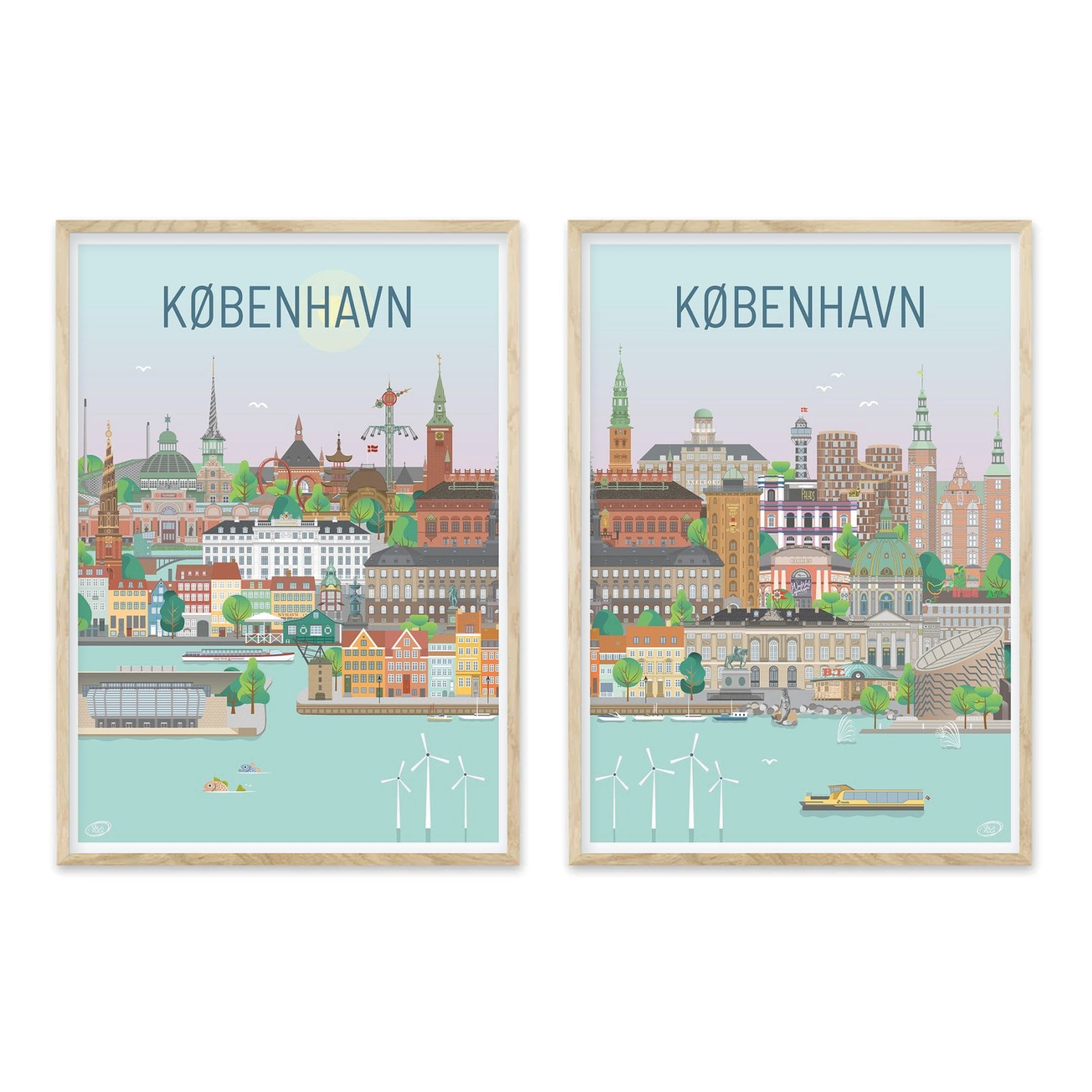 Set aus zwei Postern mit Kopenhagen-Motiven von Vilakula. Die Poster sind so gestaltet, dass sie nebeneinander aufgehängt werden können. Sie können die Größe der Poster selbst wählen.